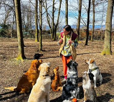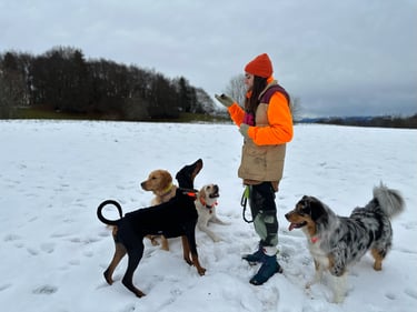 Les chiens ont des besoins spécifiques : dépenses physiques, activités ludiques, socialisation équilibrée, expériences enrichissantes, encadrement rigoureux… Je veille à respecter tous ces aspects de manière positive et bienveillante.
